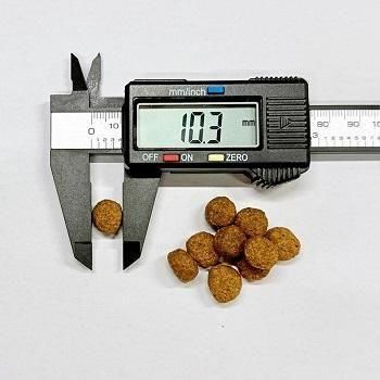 粗タンパク質 27%以上 粗脂肪 13.5%以上、粗繊維 4.5%以下、水分 9%以下、カルシウム 1.20%、マグネシウム 0.09%、カリウム 0.30%、ナトリウム 0.30%、リン 1.00%、亜鉛 150ml/kg、オメガ3脂肪酸0.8%、オメガ6脂肪酸1.8%、ヨウ素 1.9mg/kg