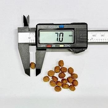 粗タンパク質23.3%(以上)、粗脂肪12%(以上)、粗繊維4.8%(以下)、水分9%(以下)、灰分9%(以下)、亜鉛150mg/kg、ビタミンE 262IU/kg、オメガ3脂肪酸* 0.8 %、オメガ6脂肪酸* 1.6%、ヨウ素 1.8mg/kg。( *AAFCOの栄養成分表では必須栄養素として認められていません)